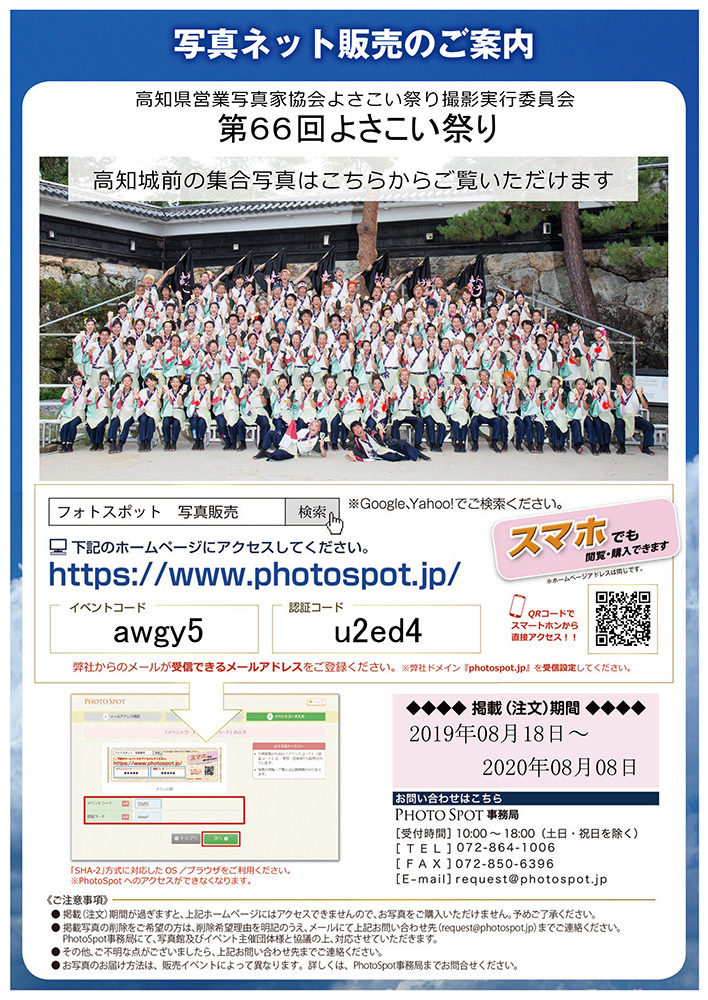 第64回よさこい祭り写真販売のお知らせ